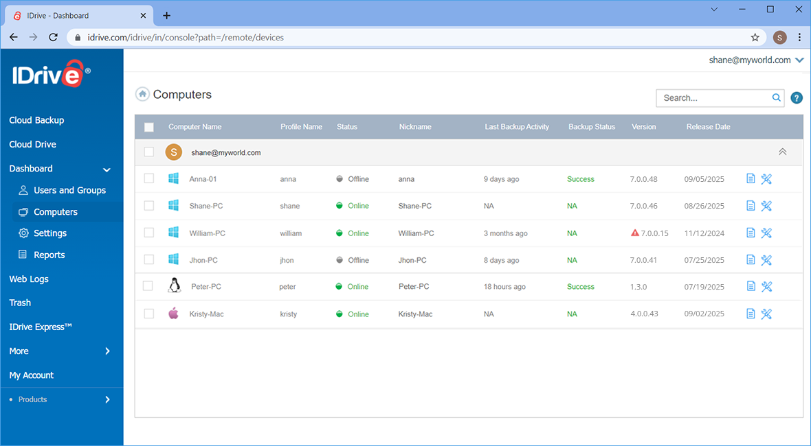 Deploy the thin client application and perform backup or restore, manage settings, for your computers via the web.